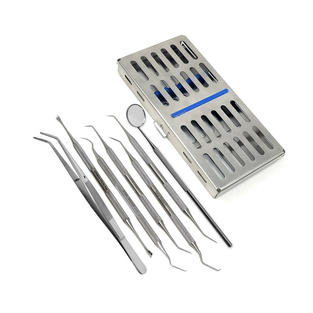 HomeDental Implant KitSterilization Cassettes Professional Dental Hygiene Tools Kit 7-Piece Deep Cleaning Set with Sterilization Cassette Box